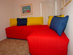 Die Eigenschaft ist a innen gefunden Four Corners, Davenport, Florida, 4 beds Villa and Pool bis schlafen 8 personen innen 4 schlafzimmer. Es gibt 4 einzelne Betten und 2 doppelte Betten zusammen mit 3 Badezimmer und 3 Toiletten.