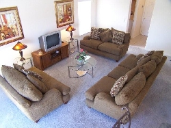 Formal Lounge mit schwarzem Leder-Suite. Familienzimmer mit einem großen, komfortablen Suite bestehend aus einem Dreisitzer Sofa, Zweisitzer Sofa und einem großen Sessel. Kabel-TV, einen DVD-Player und WLAN-Internetzugang.