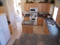 Das zweistöckige Villa verfügt über fünf Schlafzimmer, Schlafen insgesamt 10, 3,5 Bäder, klimatisiert und vor allem mit Teppichboden ausgelegt. Es gibt zwei separate Lounges für Sie nach einem anstrengenden Tag in den Themenparks mit allen Komfort von zu Hause einschließlich Kabel-TV und kostenfreien WLAN-Internetzugang entspannen. Unsere Küche ist komplett ausgestattet und es gibt eine separate Waschküche mit Waschmaschine und Trockner.