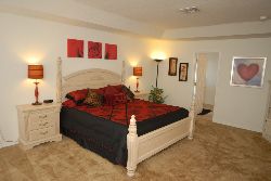 Die Eigenschaft ist a innen gefunden Our Beautiful Lakeside Home at Liberty Village Orlando bis schlafen 12 personen innen 5 schlafzimmer. Es gibt 4 einzelne Betten und 3 doppelte Betten zusammen mit 3 Badezimmer und 3 Toiletten.